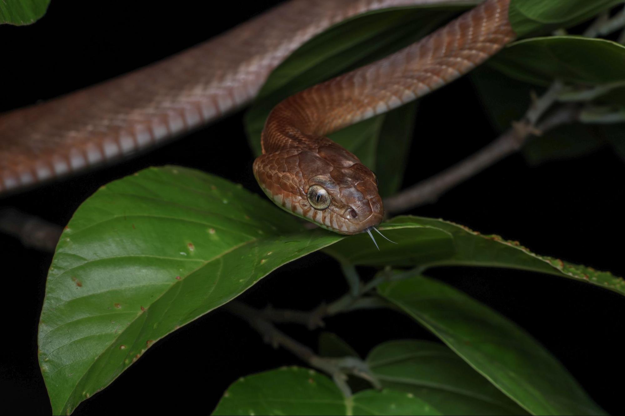 Forsten's Cat Snake is primarily nocturnal, but it can also be seen during the day, often resting inside tree hollows. Interestingly, it sometimes takes shelter in human habitations as well, especially in the roofs of mud houses, which provide an ideal resting spot.